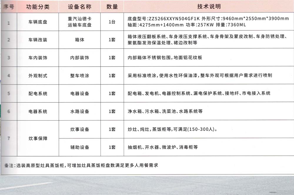 一、底盤配置: 采用重汽ZZ5266XXYN504GF1K車身,配置濰柴發動機350馬力,國六排放標準,軸距4275+1400(mm),整備質量14.87噸,額定載質量1.000935噸,陜齒十擋變速箱,帶原廠空調,該車上黃牌,城區道路請注意限行標識。