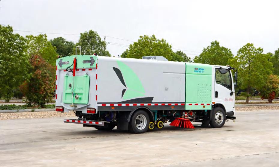 四、其他說明: 程力汽車股份有限公司環衛車系列東風華神純電動洗掃車是我公司自行設計開發、具有自主知識產權、 國際領先技術水平的新一代路面、路沿清洗、清掃及噴霧降塵的專用設備。該款洗掃車結合了掃路車及高壓 清洗車的功能特點,并解決了吸塵車無法在城市道路上清洗路沿的短板,在作業時利用掃刷將地面垃圾掃向 車內側。