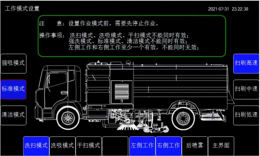 洗掃:清掃作業裝置工作的同時,上裝電機驅動配有專用離合器的高壓水泵參與工作。