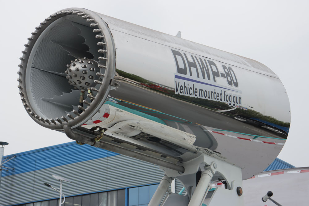 4、工作效率高、噴霧速度快;對容易引起塵埃的堆場噴水除塵時,噴出的霧粒細(xì)小與飄起的塵埃接觸時,形成一種潮濕霧狀體,能快速將塵埃抑制降沉,霧量沉降率可達(dá)95%。