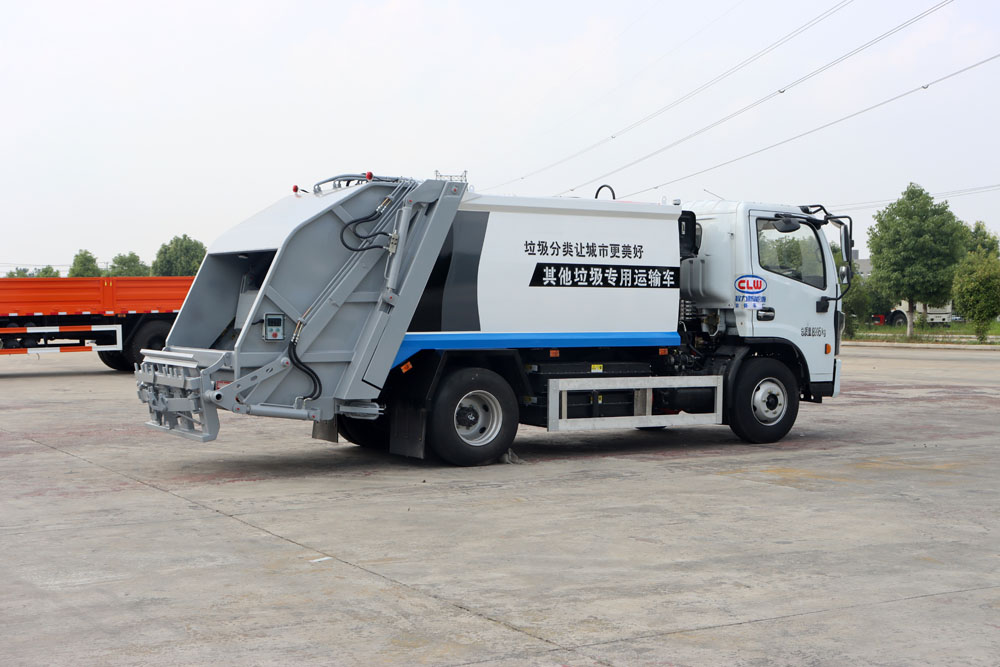 四、其他說明: 東風凱普特純電動二類底盤的基礎上,加裝垃圾箱、垃圾填充器、液壓系統,由機械、液壓(氣路)、電器三部分合為一體的專用垃圾處理、轉運作業車。整車為全密封型,自行壓縮、自行傾倒、壓縮過程中的污水全部進入污水箱,徹底的解決了垃圾運輸過程中的二次污染,具有壓力大、密封性好、