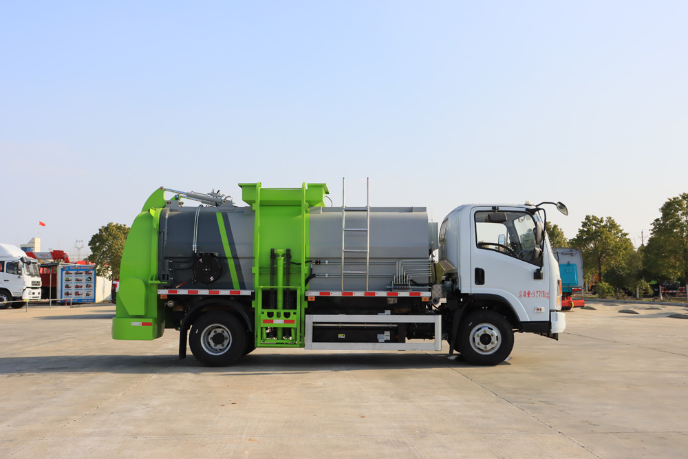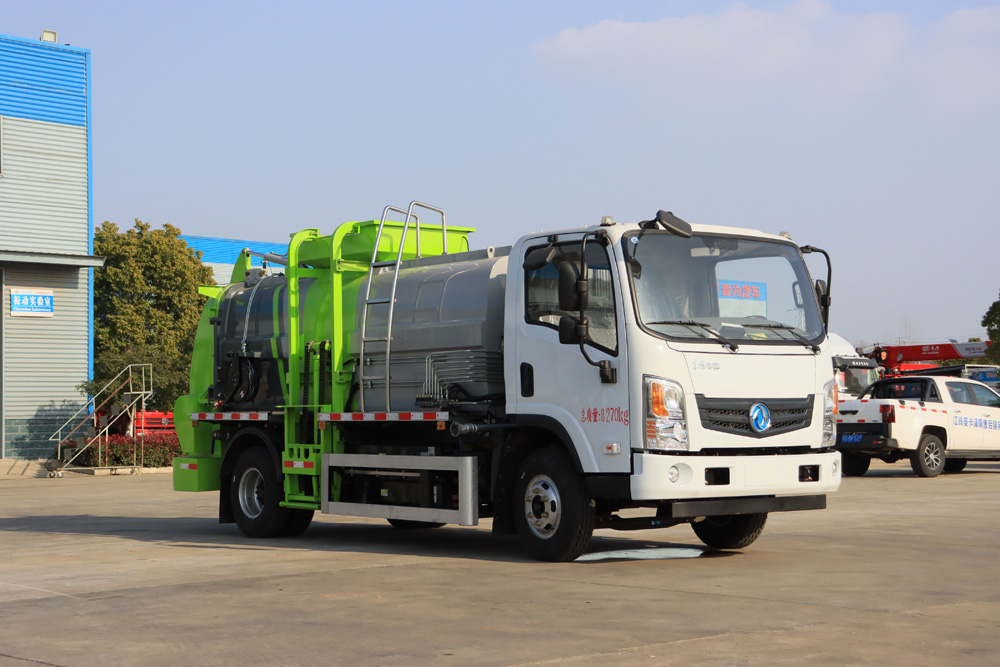 四、其他說明: 東風(fēng)純電動餐廚垃圾車是在東風(fēng)純電動二類底盤的基礎(chǔ)上,加裝垃圾箱、垃圾桶提升機(jī)、清洗裝置、液 壓系統(tǒng),由機(jī)械、液壓(氣路)、電器三部分合為一體的專用廚余垃圾處理、轉(zhuǎn)運作業(yè)車。 工作原理:整車為全密封型,自行壓縮、自行傾倒、壓縮過程中的污水全部進(jìn)入污水箱,徹底的解決了 垃圾運輸過程中的二次污染,具有壓力大、密封性好、操作方便。安全等優(yōu)點。垃圾箱可實現(xiàn)箱內(nèi)餐廚垃圾 固液的初步分離,并采用大容積污水箱,提高產(chǎn)品裝載量; 電控系統(tǒng)采用無線遙控,并通過作業(yè)動作邏輯互 鎖,保證操作的精準(zhǔn)性,杜絕誤操作。