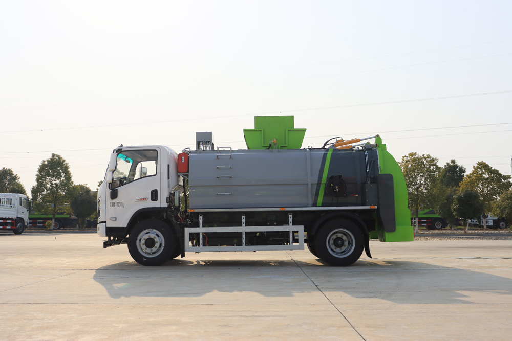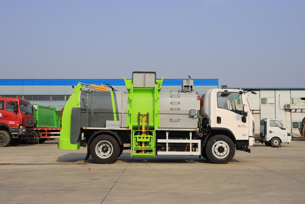 四、其他說明: 由于餐廚垃圾車上裝結構復雜,自質量較大,降低餐廚垃圾車自質量,提高其載荷 利用率,將降低車輛運營成本。因此采用高強度材料,以降低上裝自質量;擋泥板、裝飾件、蓋 板等輔助件采用密度較小的注塑件,采用集成化程度較高的零部件,以減少空間占用和自質量, 同時有利于改善液壓系統的工作性能。專人試車;模擬各種復雜工作環境,所有壓縮發車前實物測試。