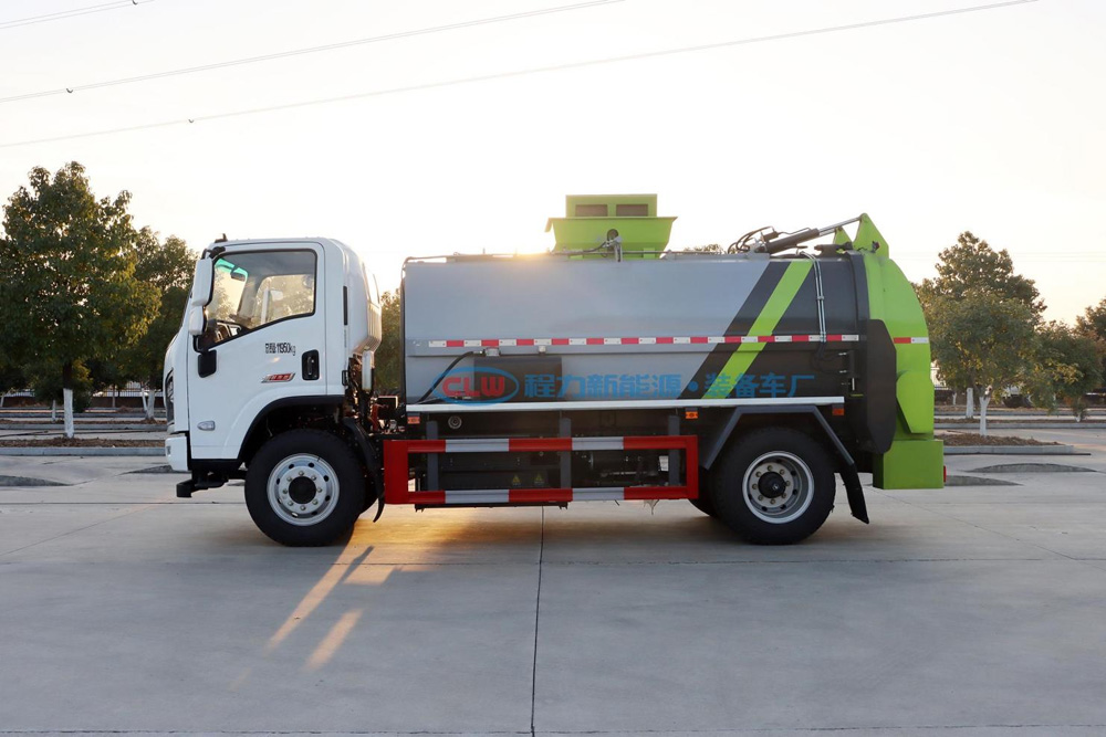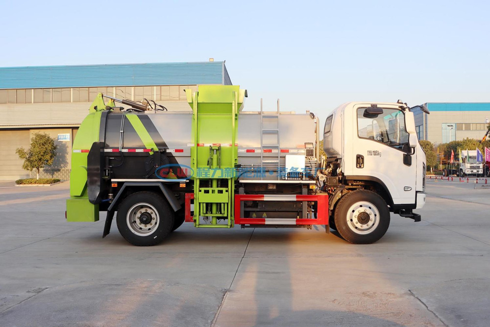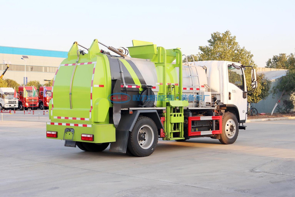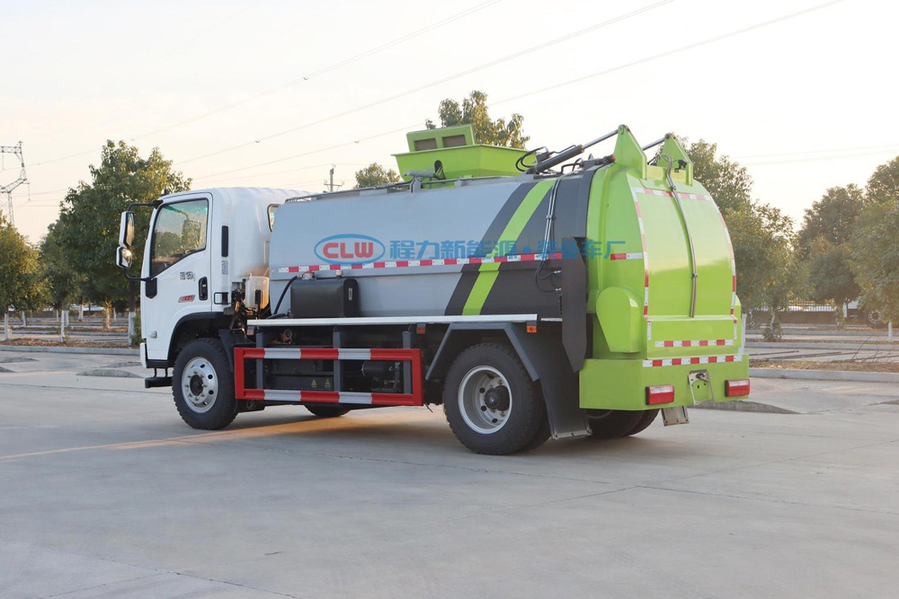 四、其他說明: 由于餐廚垃圾車上裝結構復雜,自質量較大,降低餐廚垃圾車自質量,提高其載荷 利用率,將降低車輛運營成本。因此采用高強度材料,以降低上裝自質量;擋泥板、裝飾件、蓋 板等輔助件采用密度較小的注塑件,采用集成化程度較高的零部件,以減少空間占用和自質量, 同時有利于改善液壓系統(tǒng)的工作性能。專人試車;模擬各種復雜工作環(huán)境,所有壓縮發(fā)車前實物測試。