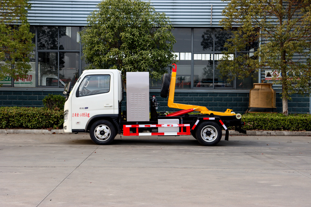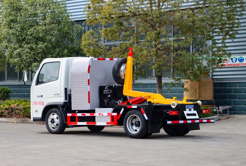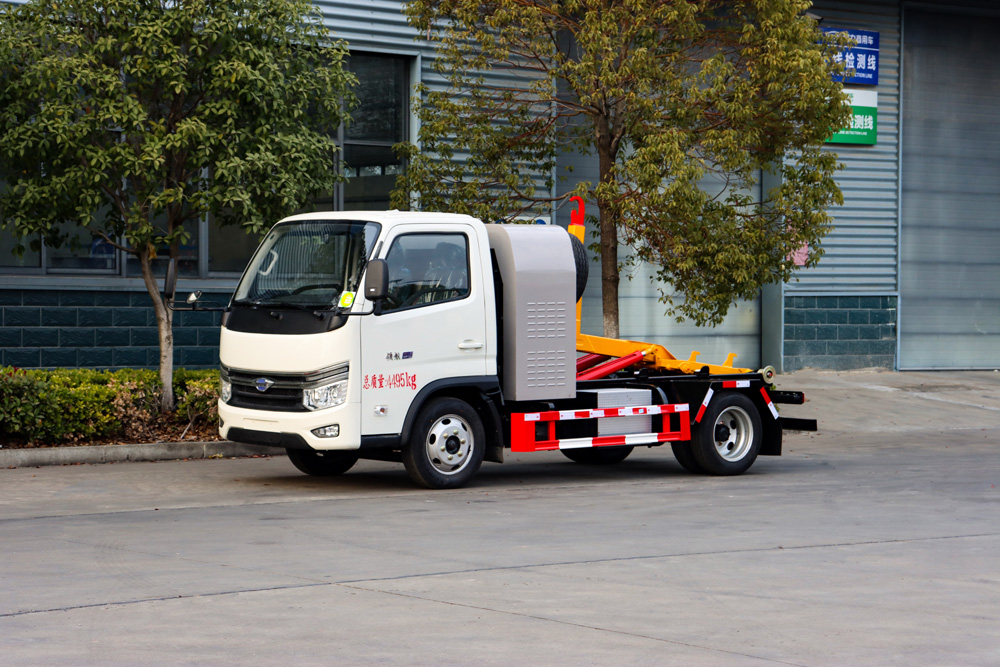 四、其他說明: 福田領航純電動車廂可卸式垃圾車是在純電動二類底盤的基礎上,加裝垃圾箱勾臂、液壓系統,由機械、液壓(氣路)、電器三部分合為一體的專用垃圾轉運車。采用電機帶動液壓油泵,液壓閥控制液壓油缸,效率高,噪音小,操作方便。