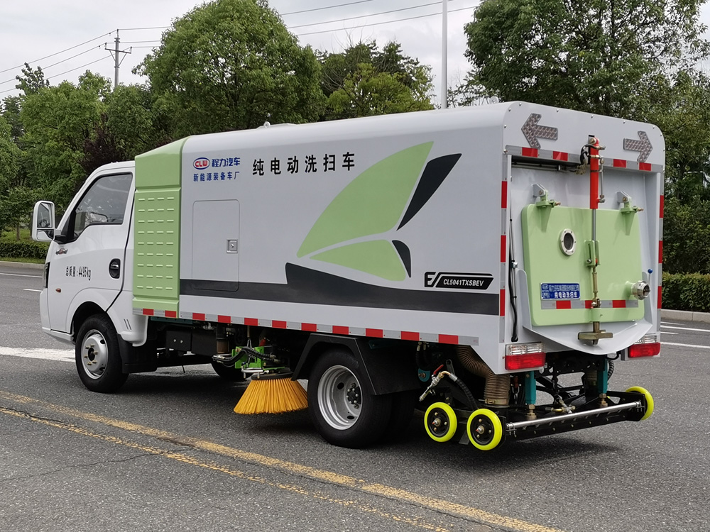 該車特點 東風途逸純電動洗掃車是我公司自行設計開發、具有自主知識產權、國際領先技術水平的新一代路面、路沿清洗、清掃及噴霧降塵的專用設備。該款洗掃車結合了掃路車及高壓清洗車的功能特點,并解決了吸塵車無法在城市道路上清洗路沿的短板,在作業時利用掃刷將地面垃圾掃向車內側,路面的頑固附著物由高壓噴水桿噴出的水流沖起,再由吸盤吸入垃圾箱儲存.具有綠色環保、功能齊全、設計合理、能耗低、清洗范圍廣、使用壽命長等特點。
