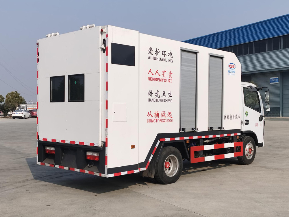 四、其他說明: 該車裝備有垃圾桶清洗裝置,用于垃圾桶清洗作業,操作簡單,一體化操作,兩個垃圾桶2-3分鐘清洗完成。清洗車自帶清洗用水以及一個較大的廢水收集箱,清洗后的臟水不會流到街面上,整個清洗流程自動化程度高,非常節省人力。