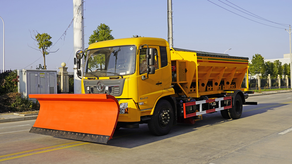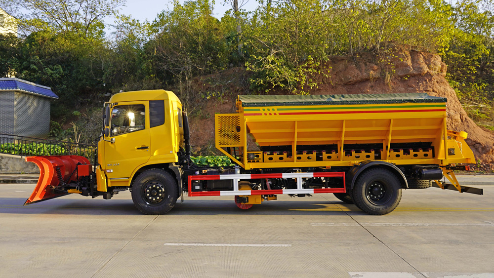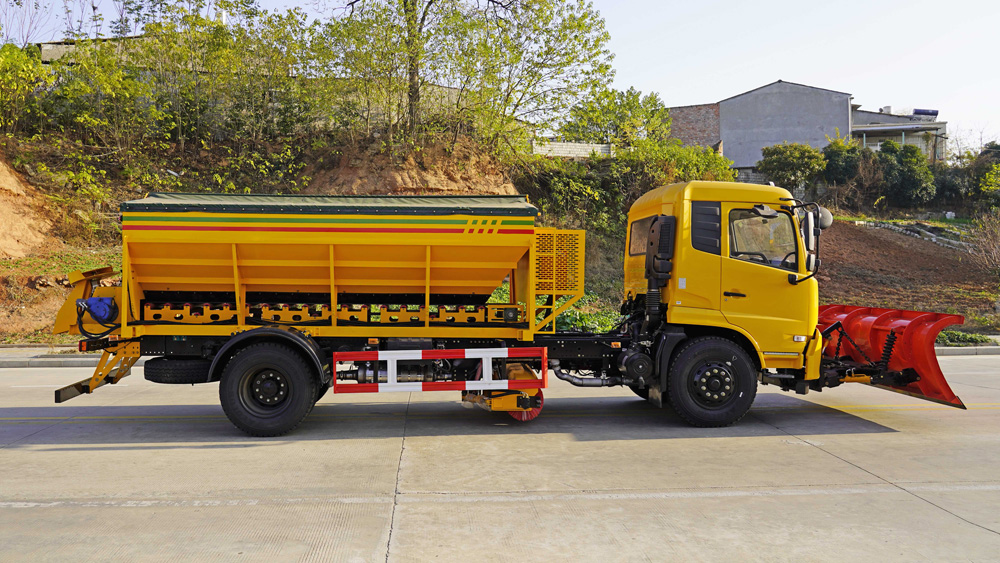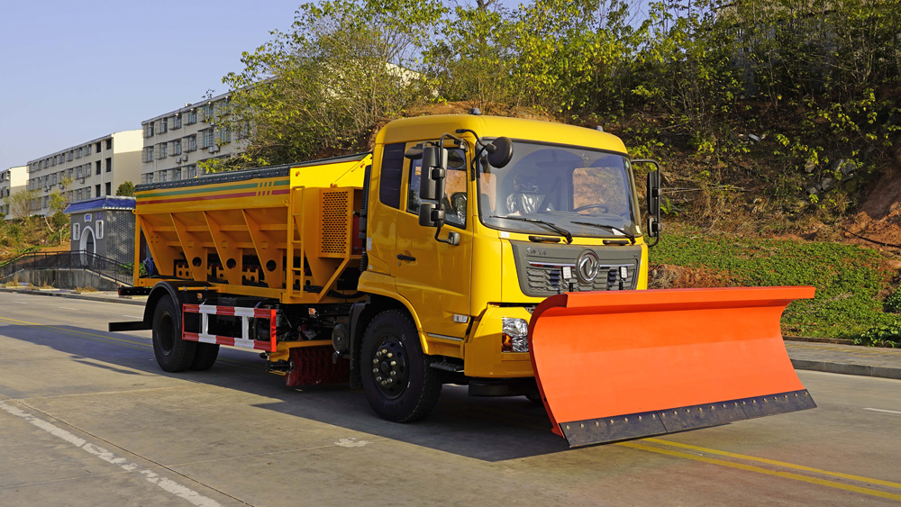 四、其他說明: 東風(fēng)天錦多功能除雪車,集掃雪、推雪、吹雪、撒布等多種功能于一體,可通過更換不同的作業(yè)裝置,如除雪鏟、掃雪滾刷等,滿足不同場景下的除雪需求,有效提升掃雪鏟冰的工作效率和作業(yè)質(zhì)量.
