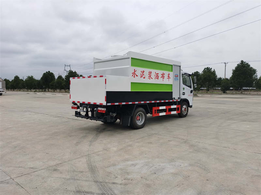 四、其他說明: 水泥罐、清水罐采用 Q235 優質碳鋼制作,高壓水泵,水泥泵(專用),攪拌系統,液壓系統,水罐到攪拌罐供 水系統(渣漿泵),15 米高壓清洗管道(帶卷盤、手持清洗槍),減速分動箱(車輛在行駛工作過程中將車速減慢 從而達到更加理想的灑布效果),尾部 14 個水泥漿專用噴頭,最大灑布寬度 4 米。標配水罐向攪拌罐供水系統,標 配提升裝置(用于袋裝水泥向罐體頂部運輸)。