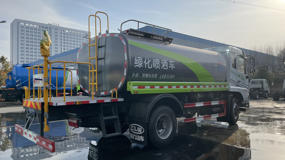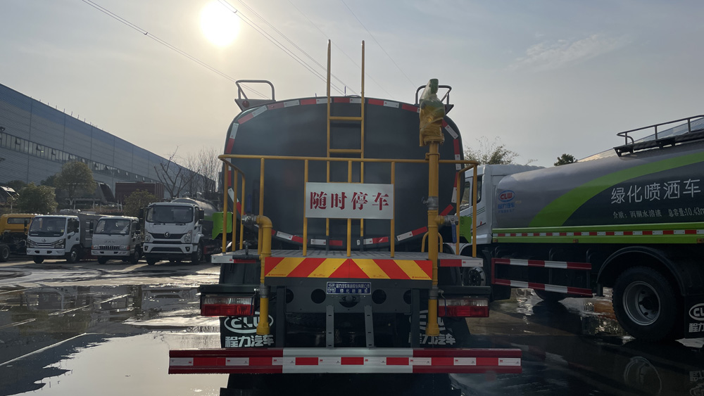 該車特點 罐體由國標5mm厚優(yōu)質(zhì)碳鋼板一次性卷壓成型,二保焊行走小車自動焊接,焊縫均勻、美觀,避免了人工焊接的漏焊和虛焊,罐體內(nèi)部加固處理,并設(shè)置防浪板,罐體內(nèi)外做防銹處理,標配前沖、后灑、側(cè)噴、后置式工作平臺,平臺帶踏梯,四周有安全護欄,平臺上設(shè)有高壓水炮,可360°旋轉(zhuǎn),可調(diào)成:直沖狀、大雨、中雨、小雨、毛毛雨。